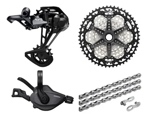 Este grupo completo XT M8100 de Shimano se compone Por un sistema de cambios, así como una maneta de cambios derecha, Incluye además una cadena Quick-Link y un cassette con 10-51 dientes.
